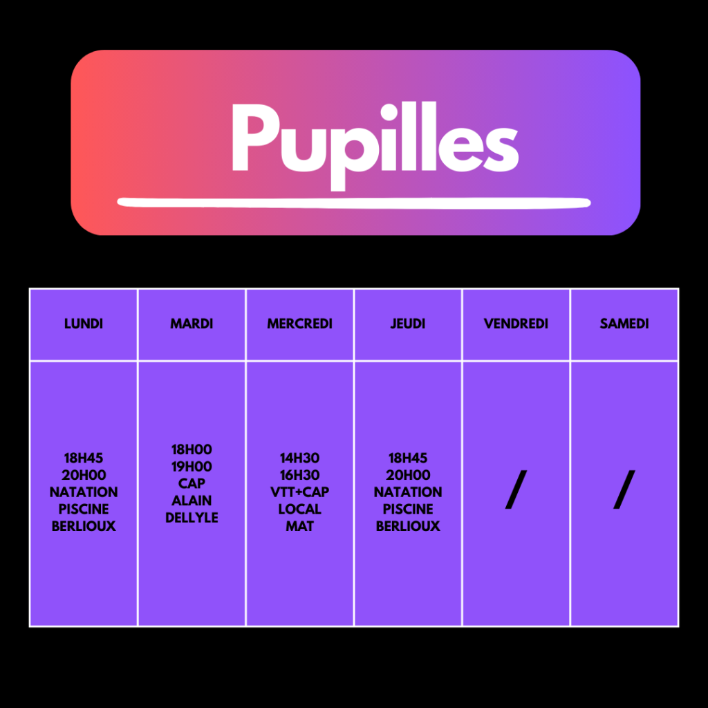 - Valable pour 2 séances par semaine pour les minis-poussins / poussins et 3 seances pour les pupilles